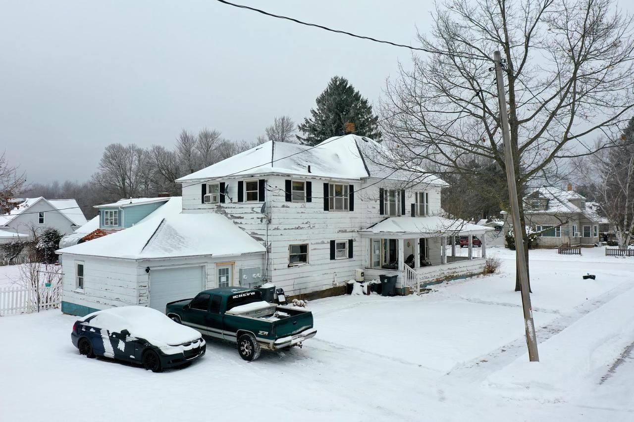 Tri-plex located on a corner lot in the Village of Rib Lake. Main floor apartment features updated floors, 3 bedrooms, kitchen with breakfast bar, living room, full bathroom, entryway with laundry hookups, attached garage and wrap around covered porch. Two upper level apartments with a kitchen, dining room, living room, bedroom and full bathroom. New gas boiler in 2021. The (3) refrigerators and (3) stoves are included in the sale price.