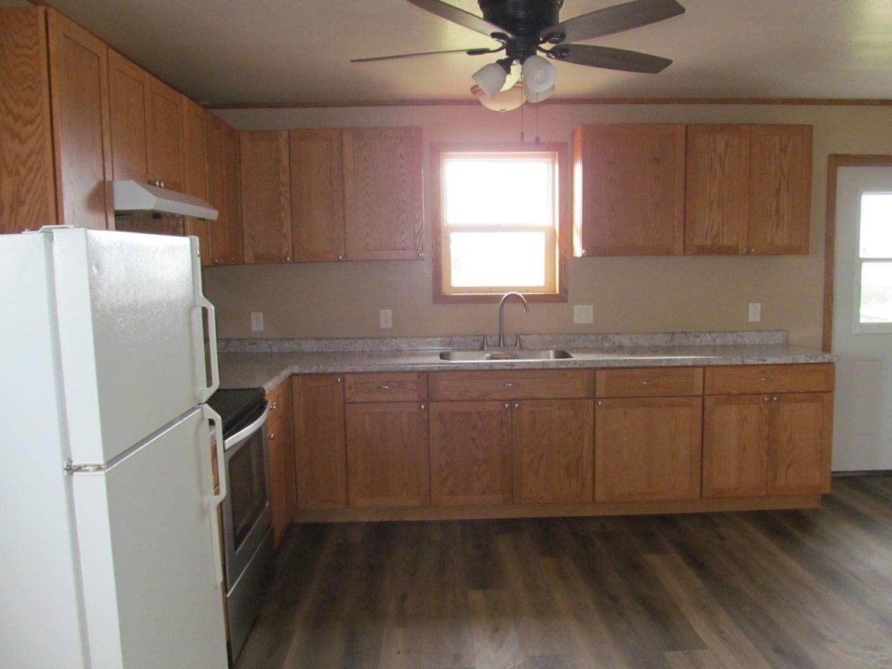 4 year old ranch house with garage and two outbuildings. Located in the country with panoramic views. 2 bed, 1 bath. In floor heat. Room to build.
