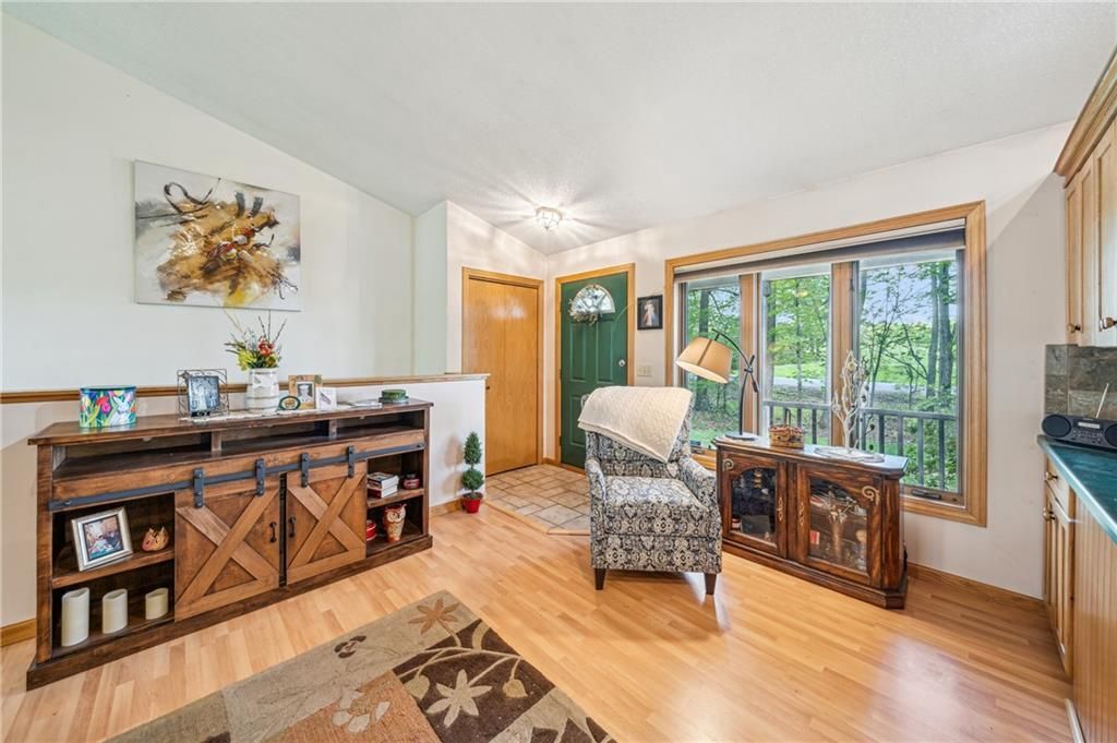 Enjoy serene one-level living on the peaceful shores of Lake McCune. This private retreat offers a spacious master suite complete with a relaxing Jacuzzi tub and stunning lake views. The open-concept layout features vaulted ceilings, a cozy fireplace, and beautiful hickory cabinets that add warmth and charm to the heart of the home. Large windows bring in natural light and showcase the tranquil surroundings. The full unfinished basement offers endless potential--finish it to suit your needs and expand your living space. Whether you're looking for a weekend escape or year-round home, this lakefront gem combines comfort, privacy, and opportunity.