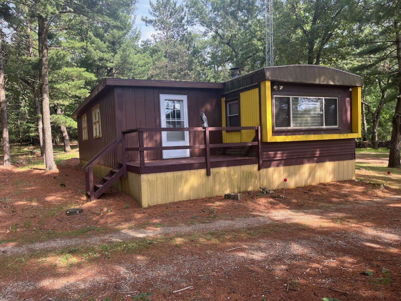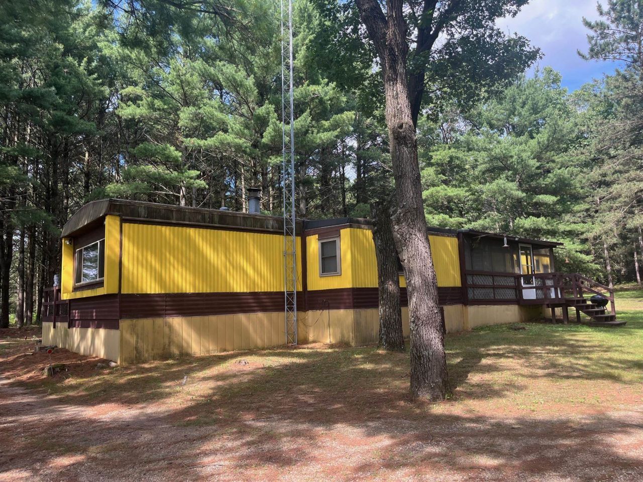 NEW PRICE 10 Acres, Wooded & Rolling with lots of wildlife, huge food plot, beautiful country setting single wide manufactured home with 12x34 Addition, 7x20 Screen Porch, 7x12 Deck, very well cared for with great interior, open kitchen/living room & Fireplace, Two Bedrooms & 2 Bathrooms on either side, Addition has Free Standing Woodstove, very Rustic interior, Lp Gas furnace & Central Air. 26x27 Garage & 10'x27' Addition, has electric, excellent storage! Fire Pit! Outstanding location within minutes of Lawrence Lake & State of Wisconsin Hunting Lands, very quiet & secluded area. Heavily wooded, excellent deer & turkey hunting area!