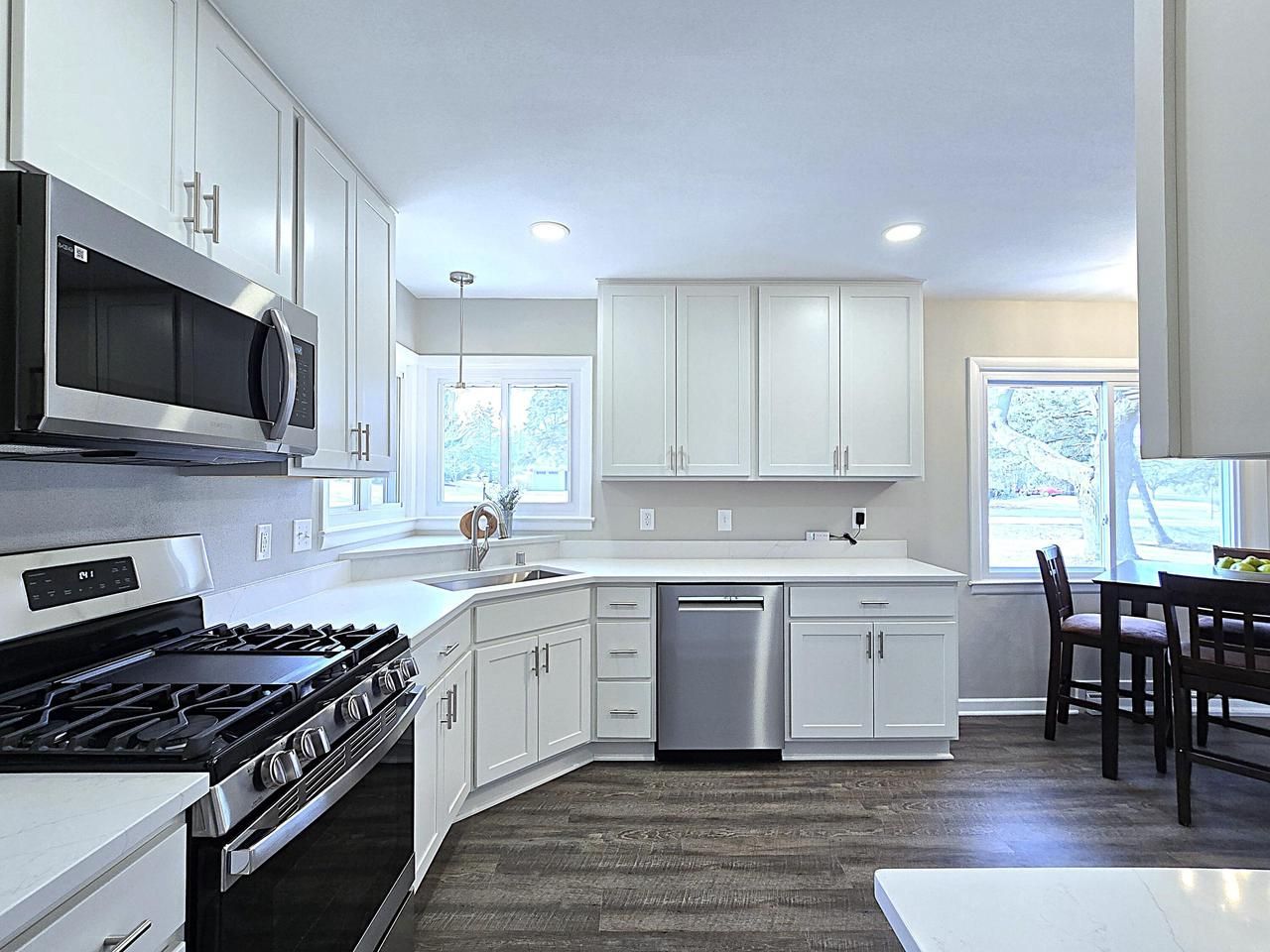 Immaculate and brilliantly updated, this brick Brookfield ranch is move-in-ready has a lot to offer its new owner! The gorgeous kitchen is well appointed and boasts elegant quartz counters, sleek stainless steel appliances, and an ample dining space. A spacious living room features a natural fireplace for cozy evenings. Three good-sized bedrooms flaunt handsome refinished hardwoods. The full bath on the main is updated and ready to serve. Entertain or hang out in the jumbo rec room featuring a wet bar, groovy LED lit glass block and bottle wall accent, & second fireplace to make for a toasty retreat. Fresh paint and new windows throughout. A three season room breezeway leads to a sizable patio overlooking a big backyard. Located in the desirable Elmbrook School district, it's a must see!
