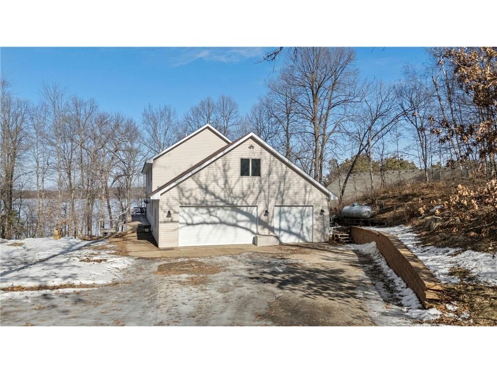 Wake up to shimmering water views and end every day with golden west-facing sunsets at this Lotus Lake retreat, set on a sandy beach shoreline with a brand-new retaining wall already in place. Inside, the home is designed to live big and bright with an open-concept layout, a dramatic two-story living room, and walls of windows facing the lake that bring the outdoors in. Upstairs feels fresh and move-in ready with a newly painted upper level and brand-new carpet. The loft adds personality and function complete with a closet tucked behind the bookcase for a fun, hidden surprise. The lower level is fully completed up to the trim work, giving you a head start to finish it your way. Outside, there's room to make it your own with the option to add an outbuilding or boathouse, creating the lake setup you?ve been dreaming about.