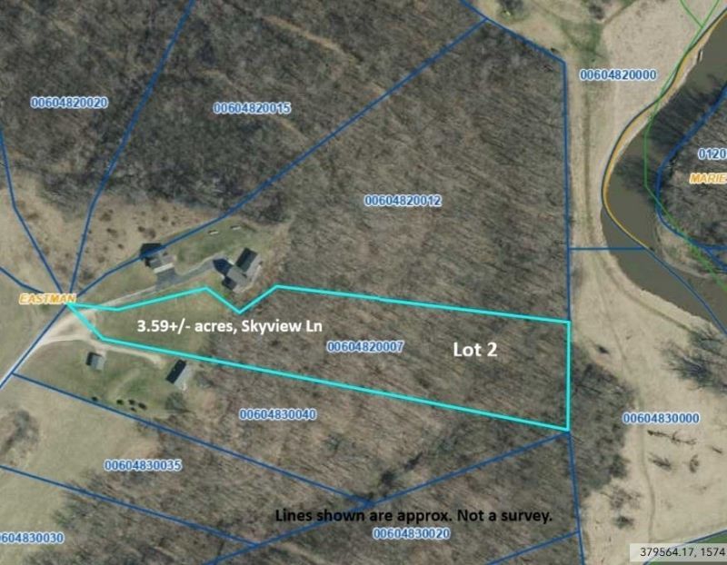 Skyview Ln. Lot 2 overlooks the amazing lower Kickapoo River valley. It is a 3.59+/- acre lot which also includes a 1/30th interest of a shared adjoining 73+/- common acres with Kickapoo River access. Lot owners within this rural subdivision enjoy the recreational year round use of this mostly wooded tract of land with its many trails, hillsides, grassy meadows and wildlife. Take your utv down the main trail to the valley for a campout or easy river access for fishing, kayaking, canoeing,etc.