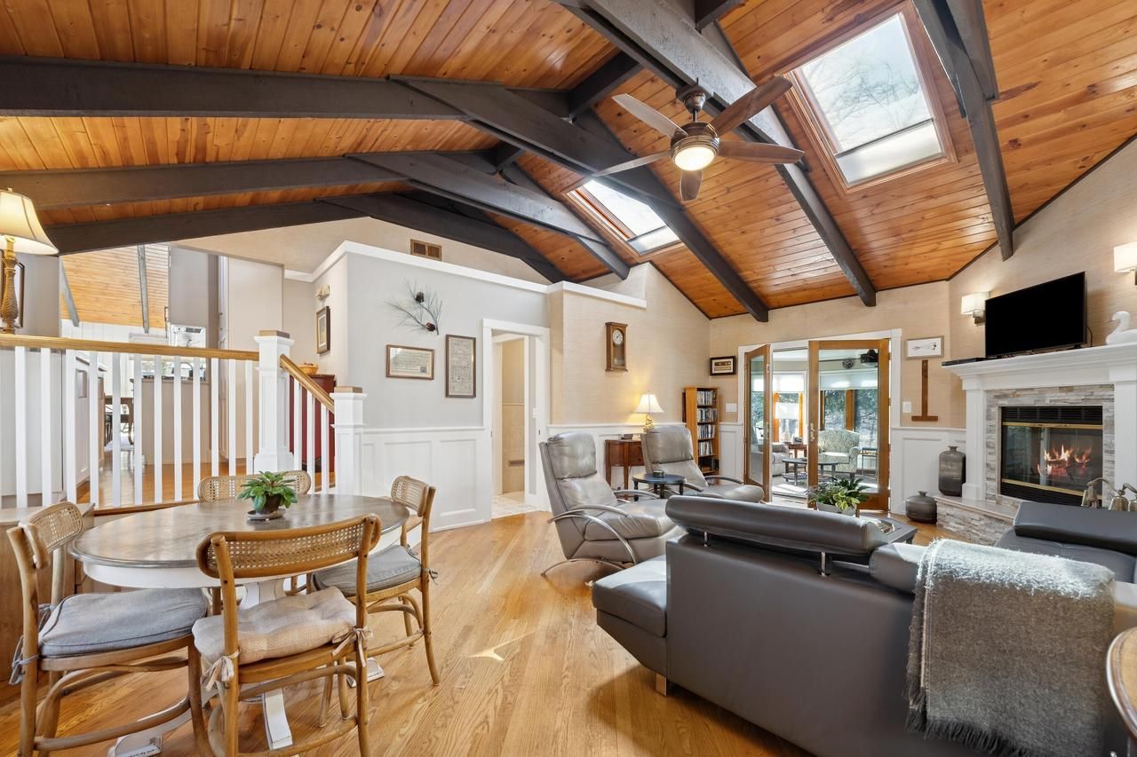 Meticulously maintained 3BD/2BA ranch w/3 Car Garage in highly sought after Sunset Hills Lake Association just 5 homes down from the private gated lake access, sandy beach, pier & picnic area. This updated home features stunning living rm w/vaulted wood beamed ceiling, HW, fireplace & casual dining area. The remodeled kitchen & baths offer stylish, modern finishes while maintaining the home's warm character. Entertain in the large sunroom w/seasonal lake views & FP. Enjoy meals in the dining area surrounded by views of nature or relax in the family rm w/striking stone FP. The quiet & private yard is a true retreat, featuring front courtyard, stone patios, mature landscaping & perennials. An exceptional opportunity to enjoy private lake access in a beautifully updated home.
