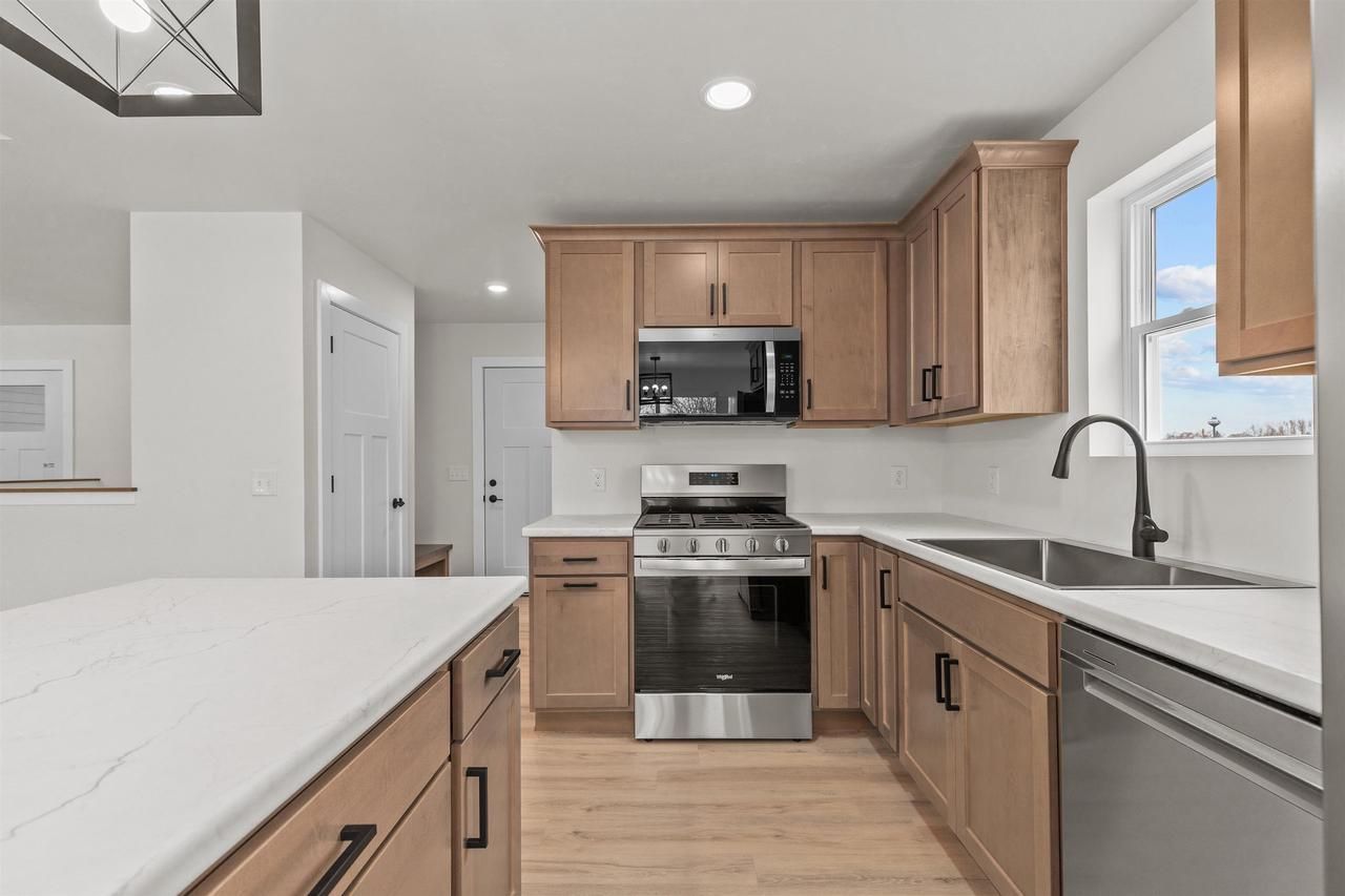 Now fully completed New home by Corbett Construction featuring our popular "Myah" plan. This 3 bedroom, 2 bathroom home offers a smart and efficient layout with a 2-car garage and thoughtful features throughout. Highlights include a tray ceiling, first-floor laundry, walk-in closet in the primary bedroom, a large kitchen island and many more! The driveway, sidewalks, patio and curb are all included, and the basement offers excellent future potential with a bathroom stub-out and egress window. A great opportunity to own a brand-new home at an affordable price point'schedule your showing today. some photos have been edited. closet shelving to be installed march 3rd