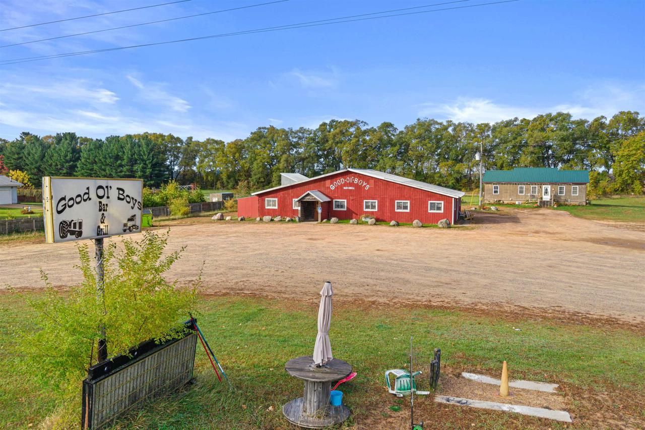 Introducing, Good Ol' Boys, a turnkey Central WI tavern located just off of I-39 in the Town of Hancock. This unique opportunity includes a successful tavern, raised Ranch style home, and storage units as an additional revenue stream. The tavern is known for its Prime Rib Saturdays, large dine-in crowds, and weekly Billiards and Horseshoe leagues. The sprawling 3724 sf establishment consists of a dining area, bar and games area, and large kitchen area. The bar games, ATM, and poker machines are provided through Schmidt Novelty and consistently generate additional revenue each week. With a total of 2.81 acres and split zoning between commercial (2.31 acres) and residential (0.50 acres), owner occupy your business location with ease. The 1134 sf home was built in 2019 and features an open concept layout, a primary ensuite, and second guest bedroom and bathroom. The home comes complete with in-floor radiant heat piped from the tavern's boiler (installed in 2023), utilizes a shared well with the tavern (pressure tank & well pump 2024), and features a covered rear porch with exce