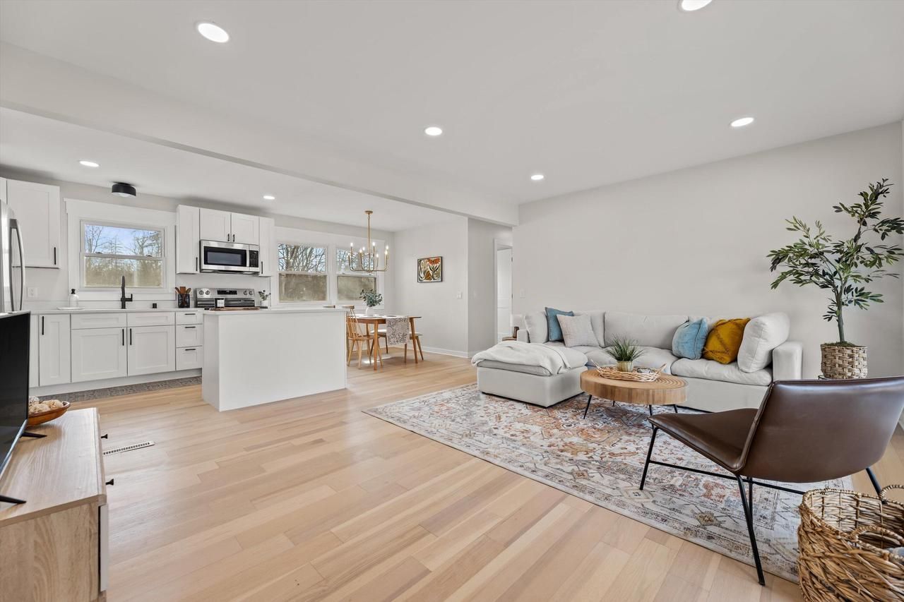 Discover this stunningly reimagined 3-bedroom, 1.5-bathroom home plus den in Menomonee Falls! Featuring a newly improved open-concept floor plan designed for modern living. The interior boasts a fully remodeled kitchen and bathroom, brand-new flooring, and fresh light fixtures throughout. Peace of mind comes standard with a new furnace and updated appliances, plus all electrical and plumbing work completed with professional permits. From the sleek ''can'' lighting to the versatile den space, this home offers the perfect blend of style and functional design. Need more space? Bring your design ideas to the large basement space and 1 acre, private backyard Welcome home to Rainbow Drive!