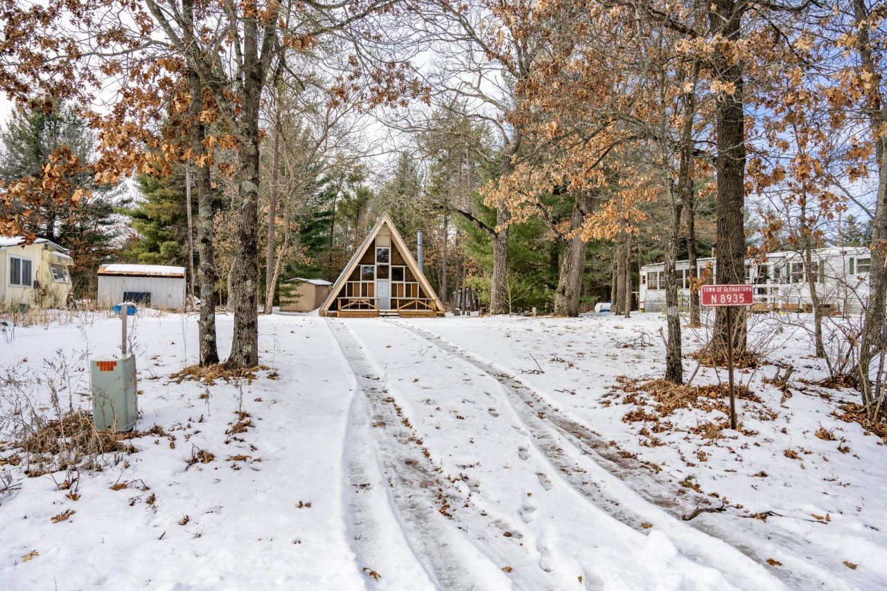 Seasonal A-Frame cabin perfect for weekend getaways. This open concept home is very spacious. Enjoy a wood burning fireplace for cooler nights and a beautiful bar area great for entertaining. Close to Castle Rock and Petenwell Lakes and only 30 minutes from Wisconsin Dells. Plenty of recreational activities just a short distance away, hunting, hiking, fishing. Boat landing, pavilion and sandy beach are right down the road, available to the residence of Whistling Wings Development. Short-term vacation rentals are allowed. Floor is not insulated. Second bedroom is a walk-through. New flooring and vanity on screen porch will stay for the new owner.