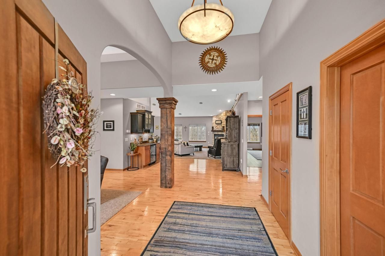 Refined living meets Lake Country lifestyle in this stunning split-plan ranch w/exposed walkout in the sought-after Arrowhead School District, ideally located between Pewaukee & Nagawicka Lakes. Featuring 5 bedrooms & a heated 3.5-car garage with ramped access, this home blends comfort & thoughtful design. Soaring ceilings, warm wood floors, and an open layout highlight a chef's kitchen with granite counters, center island, stainless appliances, and pantry flowing to a great room with floor-to-ceiling stone GFP. The private owner's suite offers a spa-like bath with jetted tub & dual-head shower. Garden walkout level adds living space, 2 bedrooms, summer kitchen, game room, and golf simulator potential. Enjoy a private backyard w/deck, patio, pergola & hot tub. Live the Lake Country life!