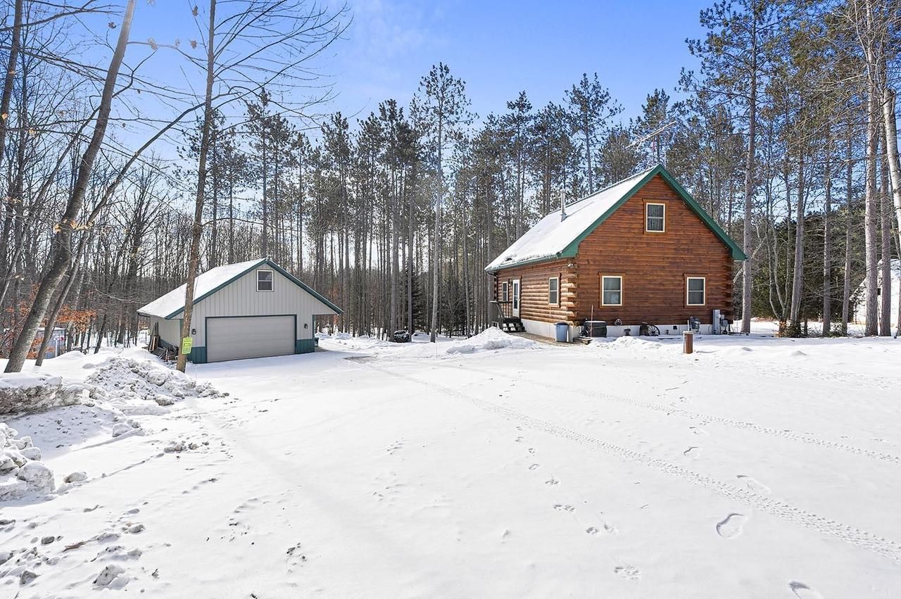 Private Northwoods setting. Beautifully maintained 1.5 story log home nestled among the trees on a 1.50 acre setting w/adjoining 1.53 acre parcel included offering its own well &septic + storage container. Sought after location within minutes to Lake Noquebay boat launch for excellent fishing & watersports. Direct access to the extensive ATV & snowmobile trail system right out your back door. Open concept great room w/wood burning fireplace, Exposed beam vaulted ceiling & T&G walls for that rustic feel. 2 main level bedrooms plus full bath & an upper loft bedroom overlooking the great room. All new appliances including washer & dryer. Full walk-out lower level w/family room w/exposed ceiling, full bath & separate laundry area. Relaxing paver patio. 2.5 Car detached garage w/upper storage