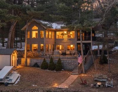 Luxury lake charm on Witters Lake! Built in 2017 and impeccably maintained, this two-story retreat offers 185 ft of frontage across 3 combined lots. Two full kitchens and two living areas make it ideal for entertaining or multi-generational living. Upper level features vaulted ceilings, open-concept design, primary suite, and skywalk to expansive deck with stunning lake views. Walkout lower level includes full kitchen, bar/dining area, full bath, and flex rooms. Beautifully landscaped with dock and boathouse included. Turn-key opportunity on a 43-acre motorized/no-wake lake perfect for pontooning, swimming, and fishing.